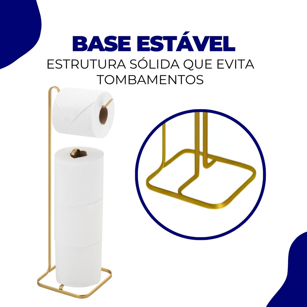Suporte Porta Papel Higiênico de Chão Banheiro Lavabo Para 4 Rolos Piatina Dourado Gold Arthi