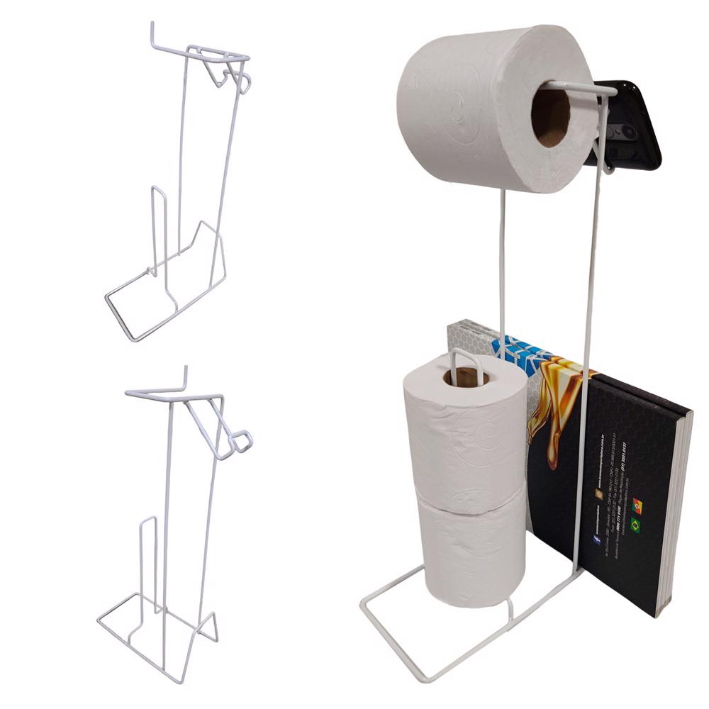 Suporte Porta Papel Higiênico de Chão Premium 3 Rolos, Celular e Revistas EVALD