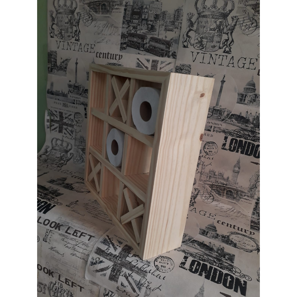 Suporte porta papel Higiênico jogo da velha madeira pinus lavabo banheiro