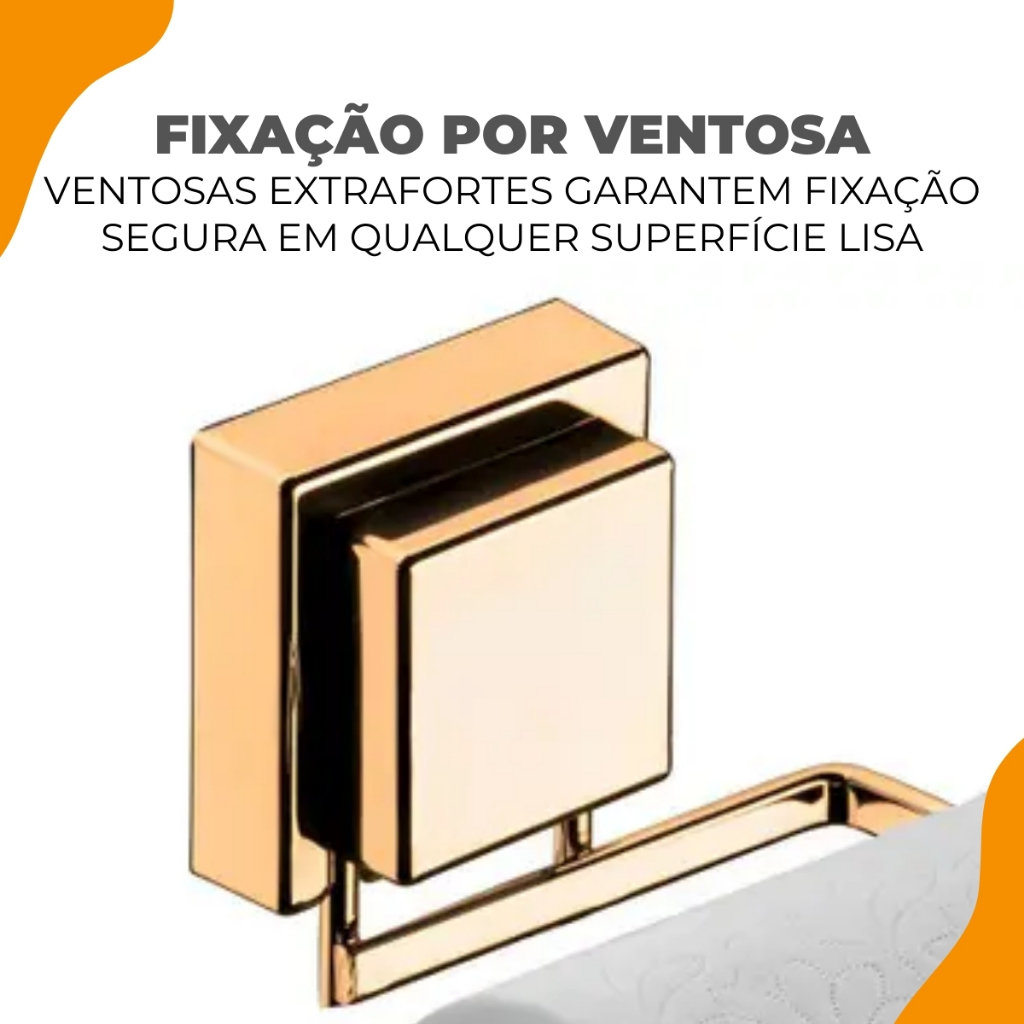 Suporte Porta Papel Higienico Papeleira Banheiro Com Ventosa Sem Furo Dourado Future