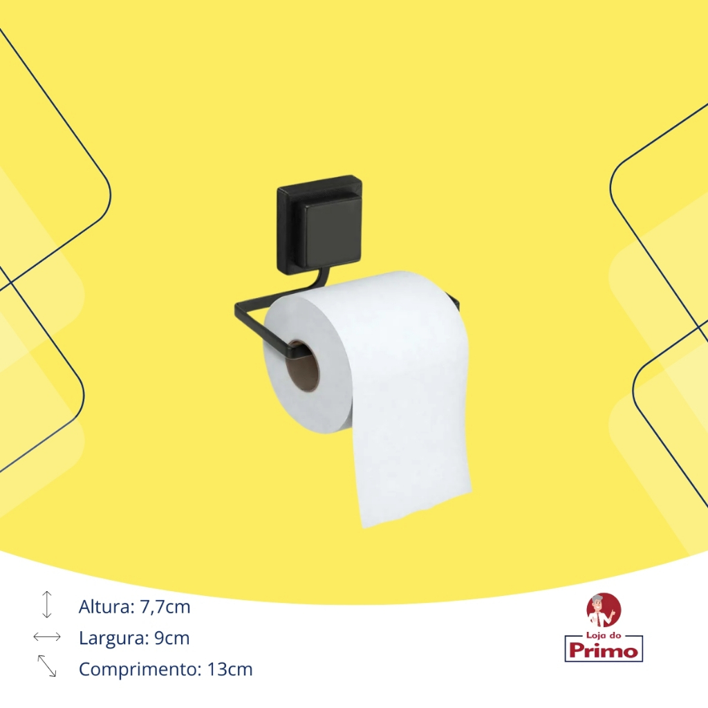 Suporte Porta Papel Higiénico Papeleira Parede Fixação Sem Furos Dupla Face 3M Black Preto Arthi