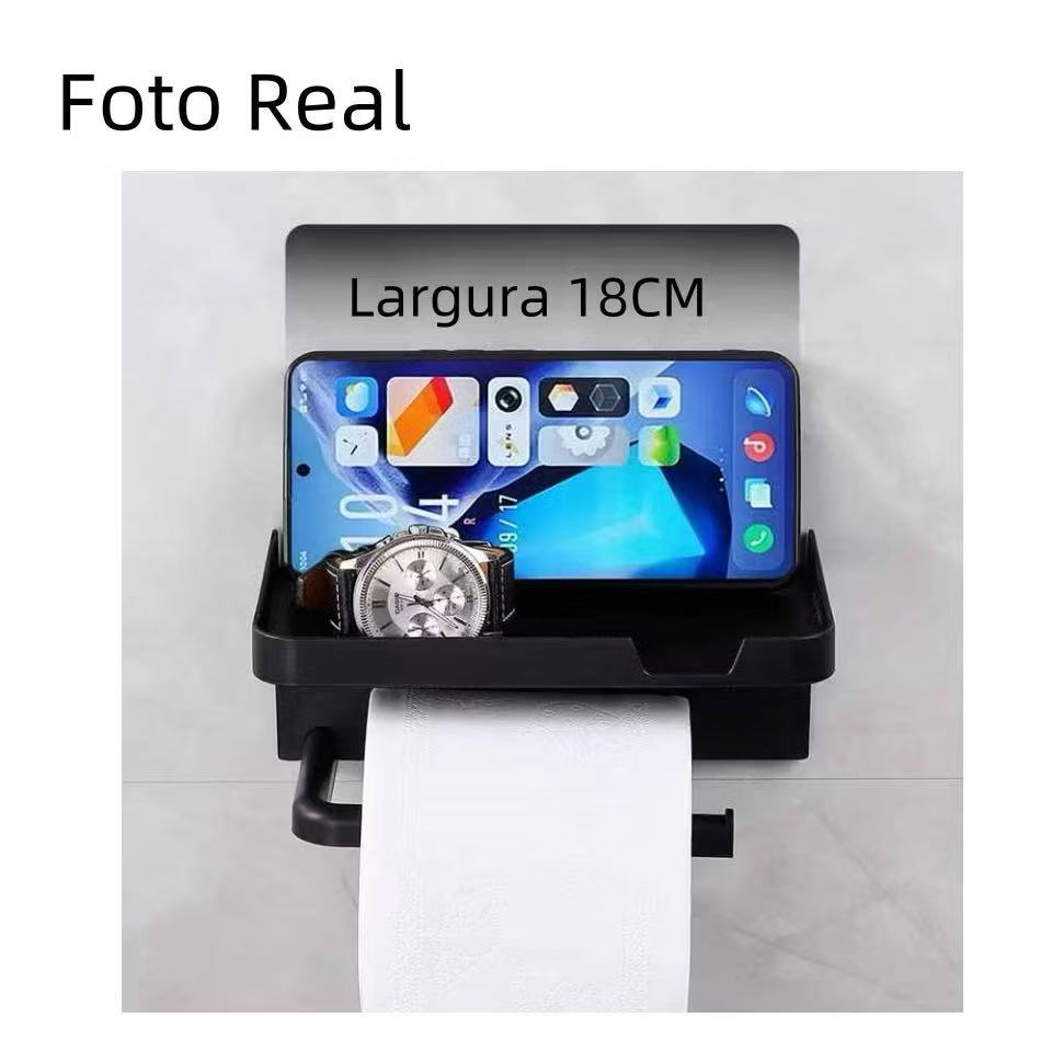 Suporte Porta Papel Higienico Preto ABS para Celular Com Adesivo Acessórios Lavabo Banheiro