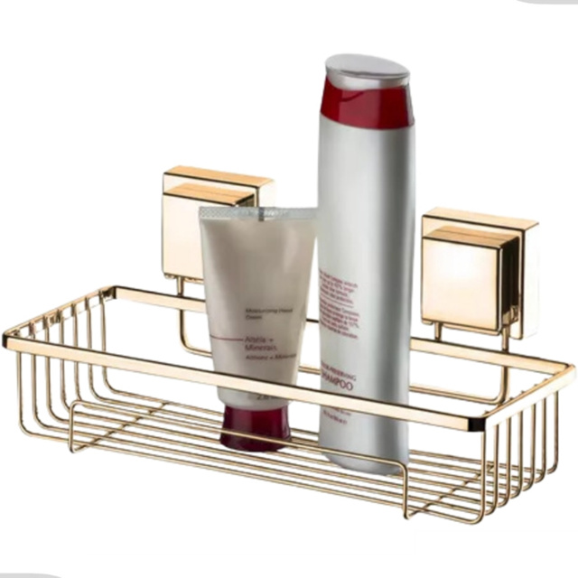 Suporte Porta Shampoo Sabonete De Parede Box Banheiro Ventosa Sem Furo Dourado Future