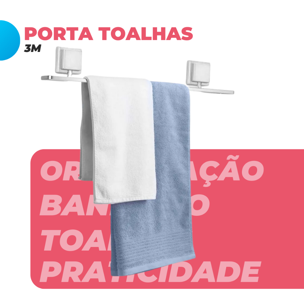 Suporte Porta Toalha de Banho Banheiro Resistente Fixação Dupla Face 3M Sem Furo Cromo Fosco Arthi