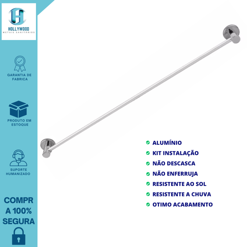 Suporte Porta Toalha de Banho, Bnheiro, Parede Stander Reto Aço Inox PROMOÇÃO