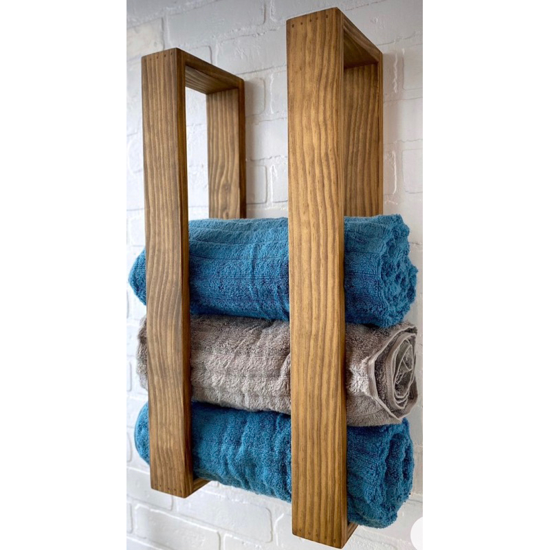 Suporte porta toalhas Observações: - A madeira pode conter pequenas imperfeições naturais ou pequenos nós; - Madeira Ecológica, de florestas sustentáveis. - As dimensões podem ter variações de até 5% para mais ou para menos. 0,50 cm de altura 0,17 cm de largura 0,5 de comprimento ### Não acompanha parafusos e buchas ###