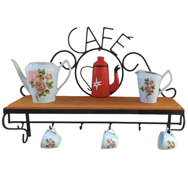Suporte Porta Xícara Parede Cantinho Café Porta Condimento Prateleira de Cozinha