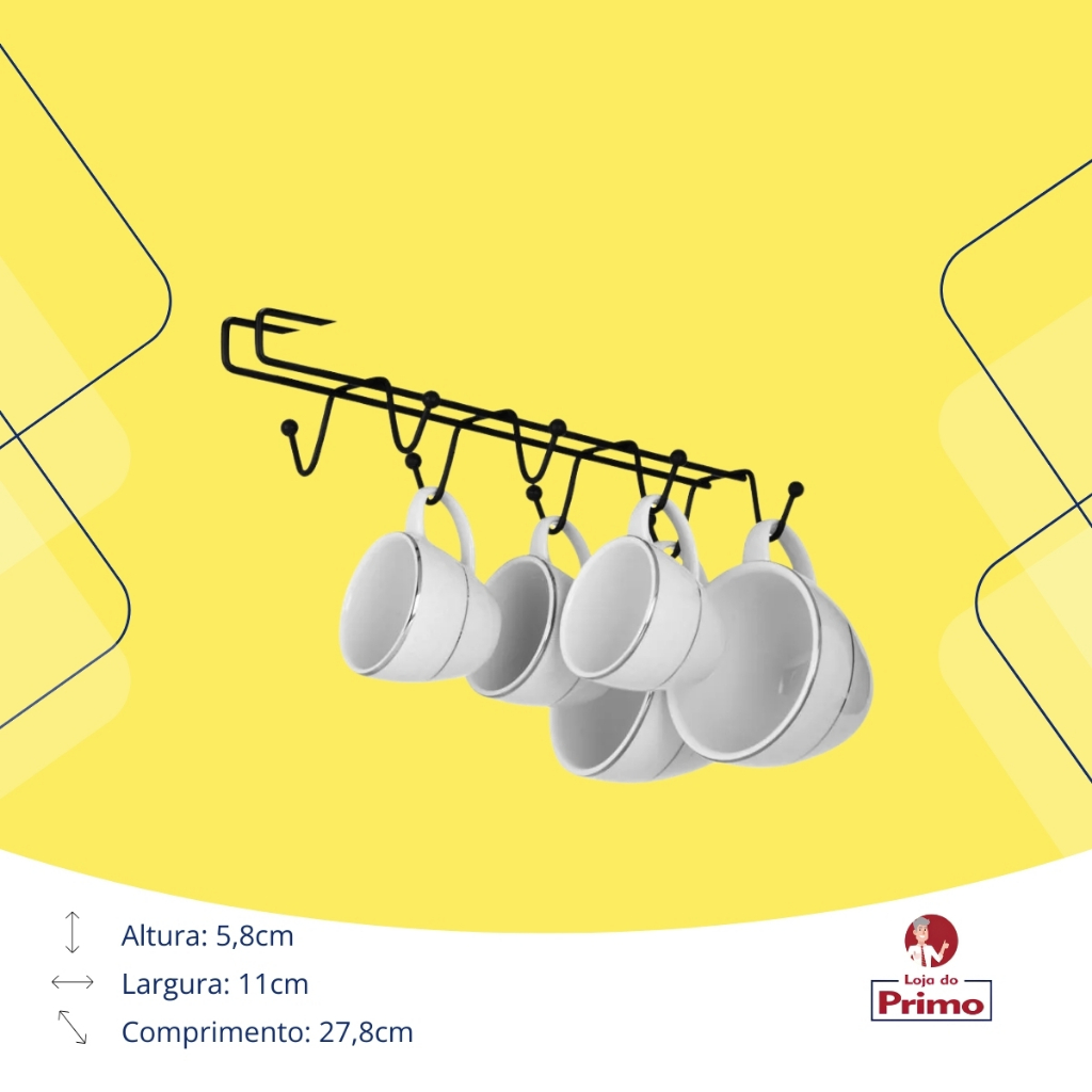 Suporte Porta Xicara Suporte de Pendurar Armário Com 8 Ganchos Preto Black Arthi