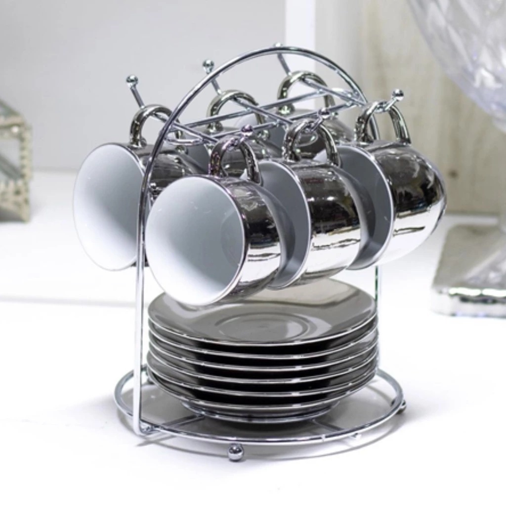 Suporte Porta Xícaras De Café E Pires 6 Ganchos De Mesa