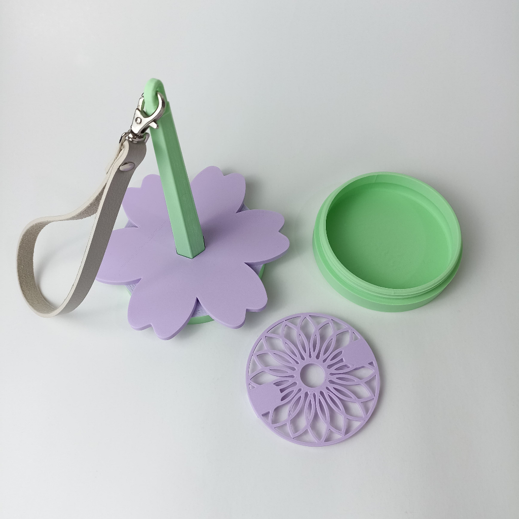 🌸 Suporte Portátil de Pulso para Fios - Modelo Cerejeira 🌸 Leve praticidade e delicadeza para seus momentos de crochê! Esse suporte de pulso mantém o fio sempre organizado e livre de nós, além de contar com um compartimento interno para guardar agulhas, marcadores e acessórios. Ideal para crochetar em qualquer lugar — com conforto, estilo e sem bagunça! 💜✨ Atenção: Ele não gira na bancada, gira somente com a alça, sua função é para ser utilizado no pulso, braço ou pendurado, o suporte só irá girar com o dispositivo da alça pendurada. ✔ Design leve e portátil ✔ Acompanha alça em couro sintético claro ✔ Pulseira removível ✔ Base com compartimento ✔ Perfeito para fios finos e médios ⚠ As cores podem variar levemente de acordo com o lote do material, iluminação das fotos ou tela do seu dispositivo. 📦 Envio rápido 💬 Qualquer dúvida, estamos por aqui