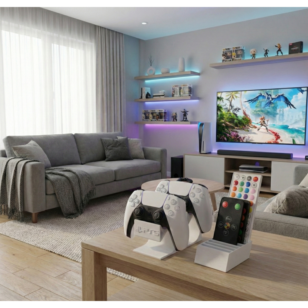 Suporte PS5 Universal para Controles + Organizador de Controles Remotos LED