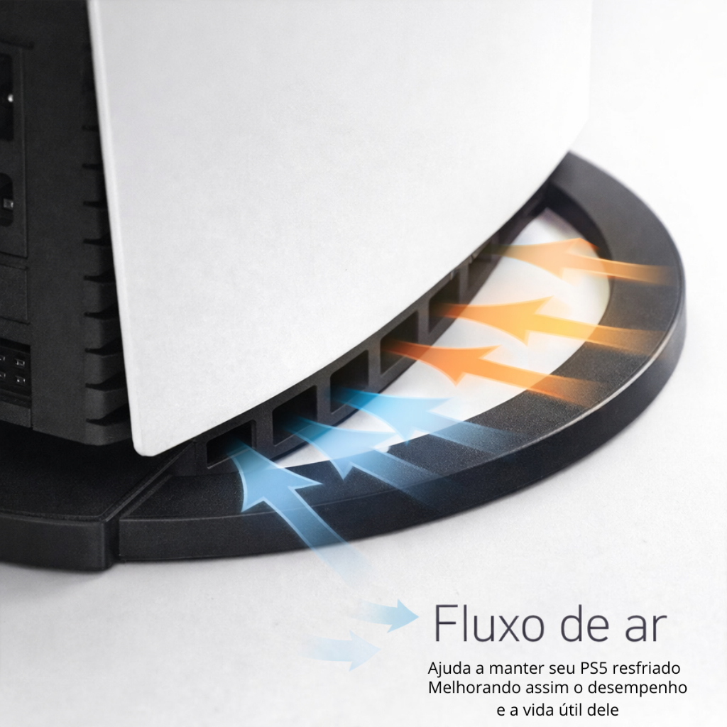 Suporte base para PS5 vertical, ideal para manter o console firme, estável e bem posicionado em qualquer setup. Compatível com todos os modelos PS5: Slim (com disco e digital), Fat e Pro. Formato circular com 16 cm de diâmetro (raio 8 cm), proporcionando ótima área de apoio para reduzir balanço e aumentar a segurança no uso diário. • Compatível com PS5 Slim, PS5 Fat e PS5 Pro (digital e com disco) • Base circular estável: 16 cm de diâmetro (raio 8 cm) • Suporta até 5 kg • Produzido em PLA (impressão 3D) com acabamento firme e encaixe preciso • Design com recortes e espaços para ventilação, ajudando a manter a circulação de ar • Ideal para organizar o setup e economizar espaço, mantendo o console na vertical Conteúdo da embalagem: • 1 suporte/base para PS5 vertical Observações: • Não acompanha console • A cor pode variar conforme o lote/material • Recomendado utilizar em superfície plana e estável