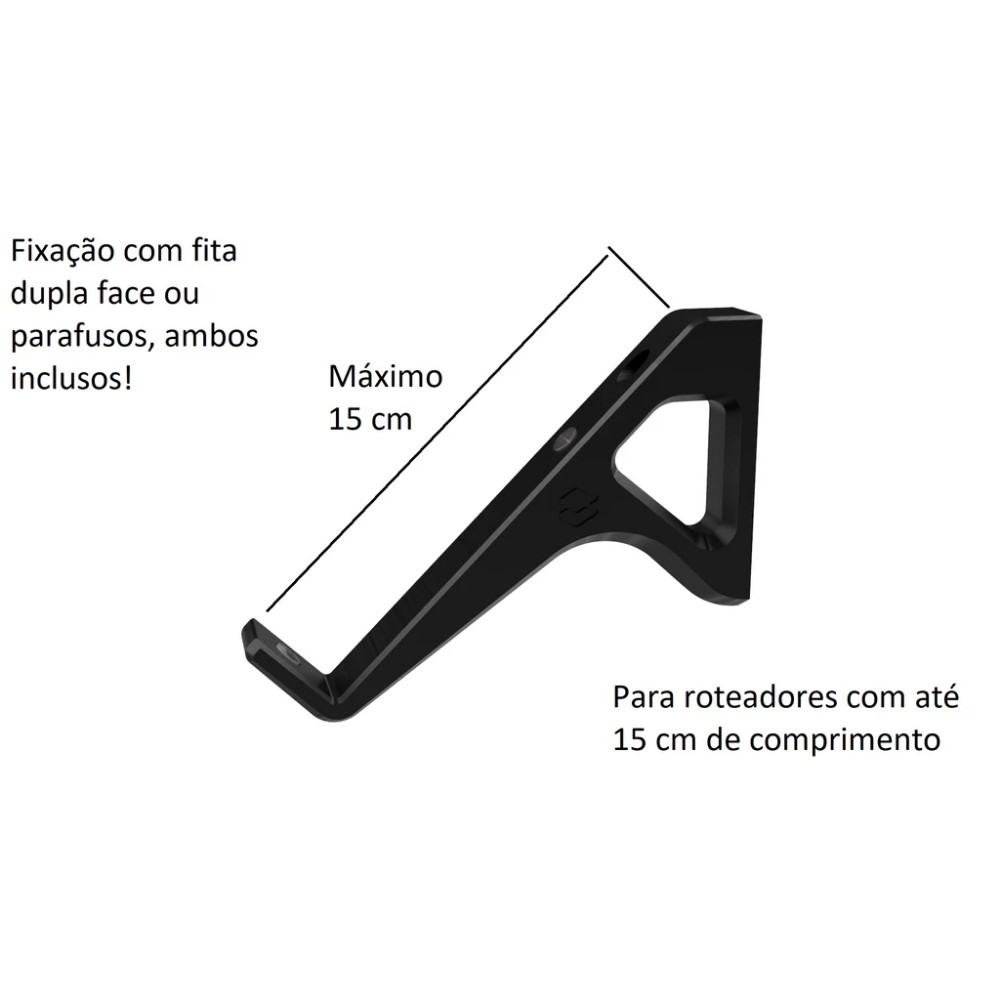 Suporte Compatível com Roteador Receptor Wi-fi De Parede Universal Instalação rápida e prática sendo possível instalar seu aparelho no local que desejar em ambiente comercial ou residencial, fácil de utilizar. Com pads de silicone para acomodar seu aparelho sem riscar ou escorregar. Os parafusos não arranham seu aparelho pois ficam protegidos dentro do suporte. Passo a passo para instalação: 1-Limpe a superfície a ser instalada, retirando qualquer poeira ou sujeira. 2-Retire a proteção da fita dupla face das duas peças, insira o aparelho sobre elas para deixar o apoio sobre o aparelho, faça a colagem alinhando as peças ajustando a folga necessária, aperte levemente para fixar. É necessário deixar a cola agir por 24 horas antes da utilização. 3-Para maior firmeza e durabilidade da instalação recomendamos utilizar o parafuso e buchas, na instalação se for em parede de alvenaria e em caso de madeira pode utilizar os parafusos sem as buchas. Compatibilidade: • Aparelhos com até 150mm de largura