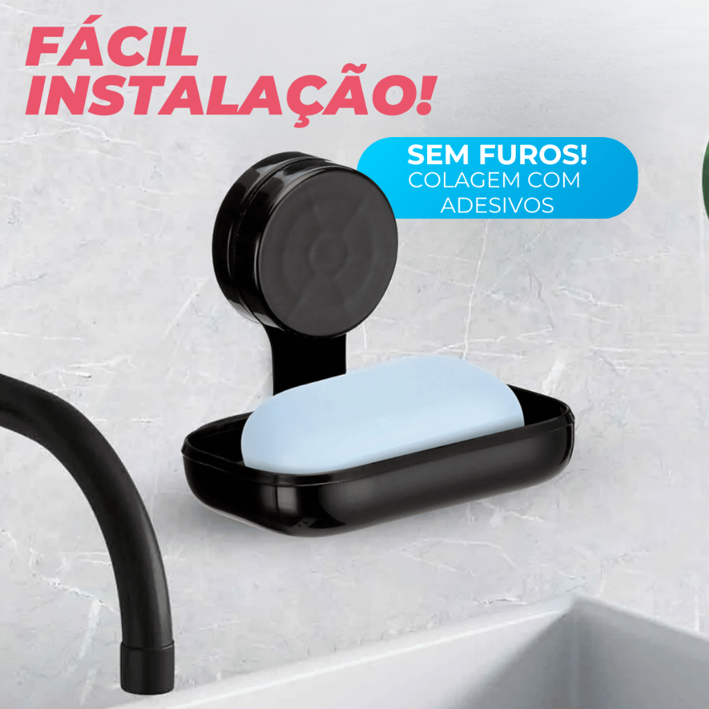 Saboneteira Banheiro Suporte Parede Porta Sabonete Preta Arthi Com design classico e elegante, a saboneteira e ideal para organizar seu banheiro. A fixacao e atraves de fita adesiva dupla face 3M extra fortes, sem o uso de ferramentas e furadeira. Alem do tradicional tratamento superficial da Arthi os produtos sao revestidos com uma camada extra do protetivo especial, garantindo cores vivas, alem de maior resistencia contra ferrugem. Especificacao Tecnica: . Fabricante: Arthi . Tamanho (CxLxA): 10,2 x.12,5 x 11,2 cm . Peso Suportado: 700 g . Cor: Preto Instalacao: Correto: superficies lisas, brilhantes e totalmente planas como vidros, espelhos, azulejos, ceramicas nao porosas, pinturas lisas e brilhantes (epoxi) e laminados. Incorreto: superficies curvas e porosas, como papel de parede, couro, cimento, madeira, etc. Fixacao: . Limpar a superficie com pano limpo e alcool. . Retirar o Papel Protetor Adesivo. . Colar o gancho cabide toalha e segurar por 10 segundos. . PRONTO, agora aguarde 1 hora ate o adesivo fixar 100%. Conteudo da Embalagem: . 01 Saboneteira Importante: Garantia de 3 Meses. Valor Unitario. Imagens Meramente Ilustrativas. Nao nos responsabilizamos pelo mau uso do produto