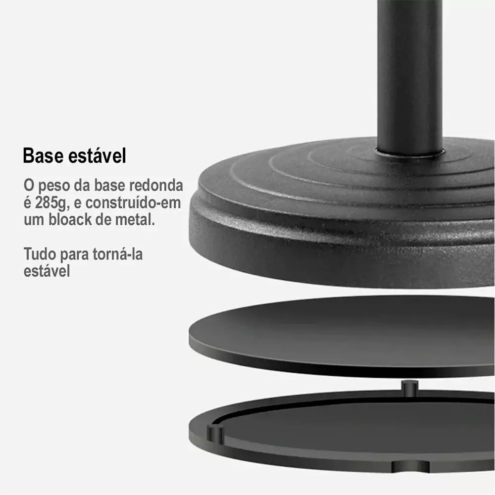 Descrição Suporte Tripé Celular Smartphone De Mesa Escritório 360º No seu dia a dia assistir filmes, séries, tutorias ou até mesmo gravar vídeos e tirar fotos nunca ficou tão fácil, com o suporte de celular de mesa. No decorrer do dia, fica difícil ter o celular a mão sempre, e com o suporte na altura máxima de 36cm e com um base firme, vai facilitar sua rotina. Por ser leve e prático você pode levar este acessório para qualquer lugar que você for. Assista tutorias de culinária, exercícios, aulas on-line, filmes e muito mais. Com este suporte você pode fazer várias atividades e ainda assistir a sua série preferida. - Suporte de mesa para celular - Altura mínima 26cm - Altura máxima 36cm - Largura máxima do celular 9cm - Inclinação 180 graus - Rotação 360 graus - Base ø11,5cm x 2cm (altura) - Peso 250g