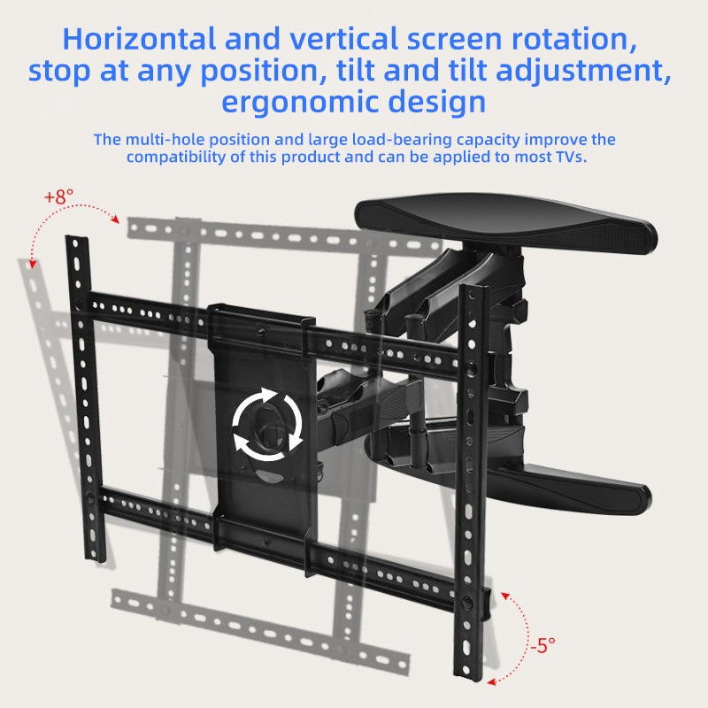 Eleve sua experiência de entretenimento a um novo patamar com Suporte Articulado para TVs de 55" a 85". Projetado para oferecer o máximo em qualidade, segurança e conveniência, este suporte é a solução perfeita para transformar seu ambiente. Suporte é compatível com Tvs LCD, LED, Plasma, 3D, OLED, QLED e até mesmo modelos curvos, com peso de até 68.2 kg. Vem pré-montado e acompanha um manual ilustrado, facilitando a instalação em sua parede de alvenaria ou painel de madeira/MDF. Com os acessórios necessários incluídos, você poderá desfrutar das vantagens deste suporte articulado em questão de minutos. Com padrão de fixação VESA compatível (200x200, 200x300, 300x200, 300x300, 400x200, 400x300, 400x400, 600x400 mm), você pode se tranquilizar quanto ao ajuste com sua TV. Aproveite ao máximo seu espaço e crie um ambiente moderno e organizado. Com um design limpo e elegante, sua sala ganhará um visual impecável, sem cabos à mostra ou móveis desordenados. O suporte articulado oferece virar na horizontal e inclinação vertical de -5° a +8°, garantindo o ângulo de visualização ideal. Ajuste-o facilmente para evitar reflexos incômodos e proporcionar o conforto perfeito para assistir TV. Feito com alumínio injetado e aço carbono de alta qualidade, este suporte é projetado para suportar até 68.2 KG. Você pode ter a tranquilidade de saber que sua TV está segura e estável, mesmo com os movimentos. Distância mínima da parede: 5,5 cm Distância máxima da parede: 50,2 cm Peso suportado: 68.2 kg (160lbs)