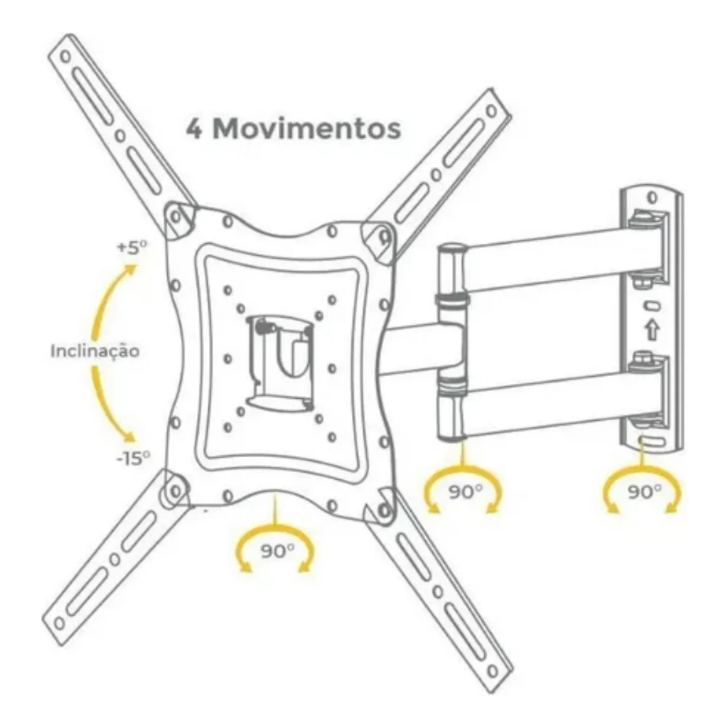 Suporte Tv Tri Articulado Lcd Led Plasma 17 A 60 Pol para parede 32 40 42 43 47 50 52 55 56 polegadas Transforme a sua sala com um suporte de parede articulado de alta qualidade, ideal para TVs entre 17" e 60". Com braço longo e movimentos precisos, permite ajuste multidirecional para melhor visualização e conforto visual. Especificações Técnicas: ° Padrão VESA: 200x200, 200x300, 300x200, 300x300, 400x200, 400x300 e 400x400 Serve em TVs LCD, LED, QLED, OLED e PLASMA ° Local de Instalação: Alvenaria, painel de madeira e MDF, Dry Wall ° Polegadas Suportada: 17 a 60" Polegadas ° Instalação: Vem pré montado - Fácil instalação ° Distância da Parede: 6 cm - 41 cm. ° Material: Aço Carbono com pintura resistente, epóxi eletrostática (anticorrosiva) ° Peso Máximo suportado: 25 Kg ° Compatibilidade: TV de 17 a 60 polegadas ° Fixação: parede (suporte articulado) ° Movimentos: inclinação, rotação e extensão (braço articulado) ° Braço longo: alcance ampliado da parede para frente ° Material: aço reforçado com acabamento anticorrosão ° Capacidade de carga: suporta TVs de até (peso máximo, conforme fornecedor) ° Sistema de regulagem: para nivelamento da tela após instalação ° Parafusos e buchas inclusos: padrão VESA compatível Características: ° Flexibilidade total de posicionamento — ajuste a distância, ângulo e giro da TV ° Design robusto e seguro — estrutura de aço que garante estabilidade ° Fácil instalação — acompanha kit de montagem completo ° Compatível com diversos modelos — atende TVs LED, LCD, OLED com padrão VESA ° Acabamento resistente — protege contra ferrugem e envelhecimento Itens Inclusos: ° 1 × Suporte de parede articulado (braço longo) ° Kit de parafusos e buchas compatíveis com padrões VESA ° Par de prendedores/adaptadores ° Organizador de cabos ° Manual de instalação • AOC • LG • Multilaser • Panasonic • Philco • Philips • Samsung • Sempre • Sony • TCL Garantia de Qualidade: ° 90 dias de garantia contra defeitos de fabricação ° Emissão de Nota Fiscal ° 7 dias para devolução gratuita, seguindo as regras do Mercado Livre Garantia do vendedor: 3 anos