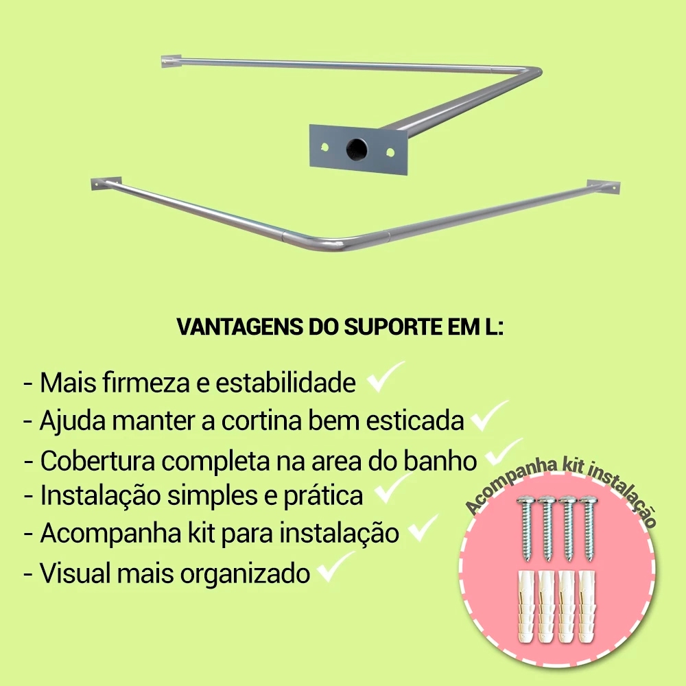 Suporte Varão em L Bastão Tubo Curvo Alumínio resistente para Cortina Box Banheiro Lavabo