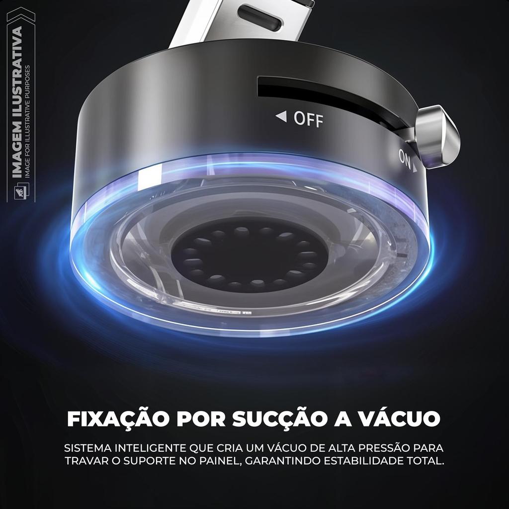 O Suporte Suction MagSafe Armor da Gshield foi desenvolvido para quem busca o equilíbrio perfeito entre força magnética, estabilidade absoluta e um design sofisticado que complementa o interior do carro. Feito para proporcionar a melhor experiência de uso com aparelhos compatíveis com MagSafe, o Armor combina tecnologia, durabilidade e engenharia avançada em um único suporte moderno e extremamente funcional. No coração do sistema está a tecnologia de 17 ímãs de neodímio de aviação, dispostos em fileira dupla para criar uma força magnética até seis vezes mais potente do que suportes comuns. Esse poder de atração mantém o celular totalmente firme, mesmo em ruas esburacadas, frenagens bruscas ou curvas mais acentuadas. O encaixe é imediato, preciso e seguro, mantendo o smartphone imóvel sem necessidade de ajustes constantes. Para oferecer ainda mais segurança e estabilidade, o MagSafe Armor utiliza um sistema de sucção a vácuo inteligente, que cria alta pressão ao ser acionado, fixando o suporte no painel com uma aderência profissional. Diferente de ventosas comuns, essa tecnologia mantém o suporte travado no lugar por longos períodos, mesmo sob variações de temperatura e textura do material do veículo. É a combinação ideal entre praticidade e confiança. Pensando na performance do aparelho durante o uso, o suporte possui um design de resfriamento vazado, que permite rápida dissipação de calor enquanto o celular está em funcionamento ou carregando. A estrutura aberta evita o superaquecimento e mantém o desempenho do smartphone estável, mesmo em viagens longas, dias quentes ou uso intenso de GPS e apps de navegação. Seu corpo é construído em liga metálica premium de alta resistência, com um acabamento sofisticado que valoriza o interior do carro e transmite imediatamente a sensação de robustez e qualidade superior. O braço multiarticulado oferece ajustes precisos de altura, inclinação e ângulo, permitindo posicionar o celular exatamente como você precisa, seja na vertical ou horizontal, sem bloquear a visão da estrada. Minimalista, portátil e com encaixe magnético instantâneo, o Suction MagSafe Armor da Gshield entrega uma experiência de uso fluida, moderna e poderosa. Um suporte feito para quem valoriza tecnologia real, estética apurada e estabilidade acima da média - tudo isso com o padrão de qualidade que a Gshield representa. ESPECIFICAÇÕES Marca: GShield Fixação: Sucção a vácuo com alavanca de pressão MagSafe: Sim - 17 ímãs de neodímio N52 (super fixação) Materiais: Liga de aviação + polímero reforçado Ajustes: Rotação 360° e ajuste multiangular Design: Estrutura vazada para resfriamento rápido Instalação: Painel, vidro e superfícies lisas internas Modos de uso: Vertical ou Horizontal Extras: círculo de fixação magnética incluso Cor: Preto