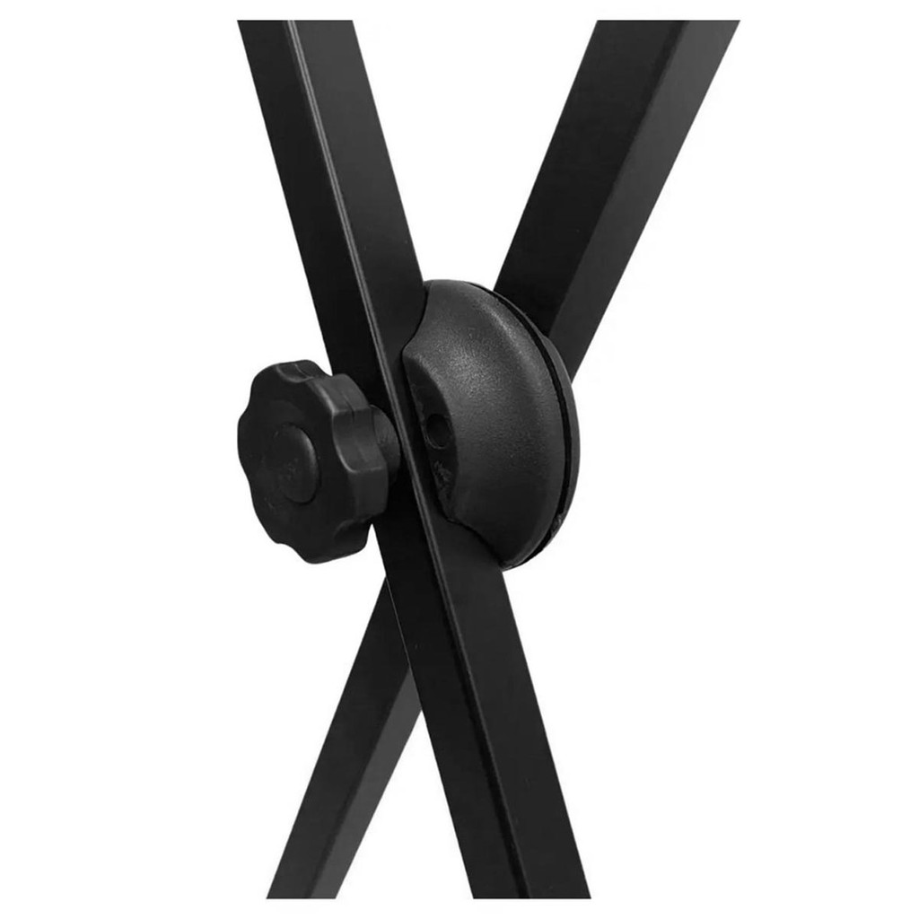 Suporte em X p/ 1 teclado-Tubos em metalon 20x20mm;-regulagem de abertura;-Ponteiras anti derrapantes que garantem excelente estabilidade;-Capacidade: 20kg -Disponível na cor: PretoDimensões:- Suporte Fechado: 104 x 40 x 7 cm- Altura Minima: 51cm ( Largura fica com 91cm );- Altura média: 71cm ( Largura fica com 77cm );- Altura Máxima: 97cm ( Largura fica com 38cm );