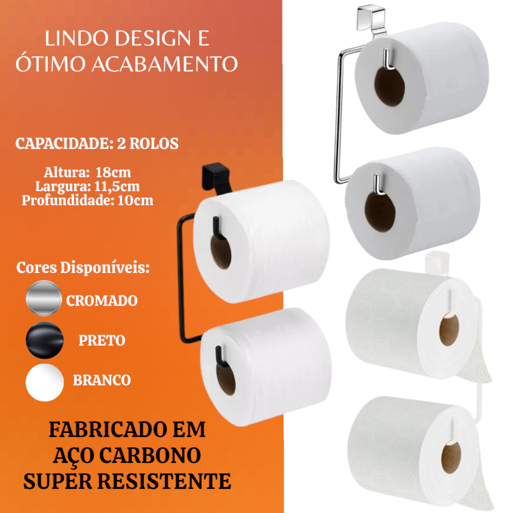Suportes Banheiro Duplo Para Papel Higiênico Caixa Acoplada Cromado Branco Preto Dois Rolos