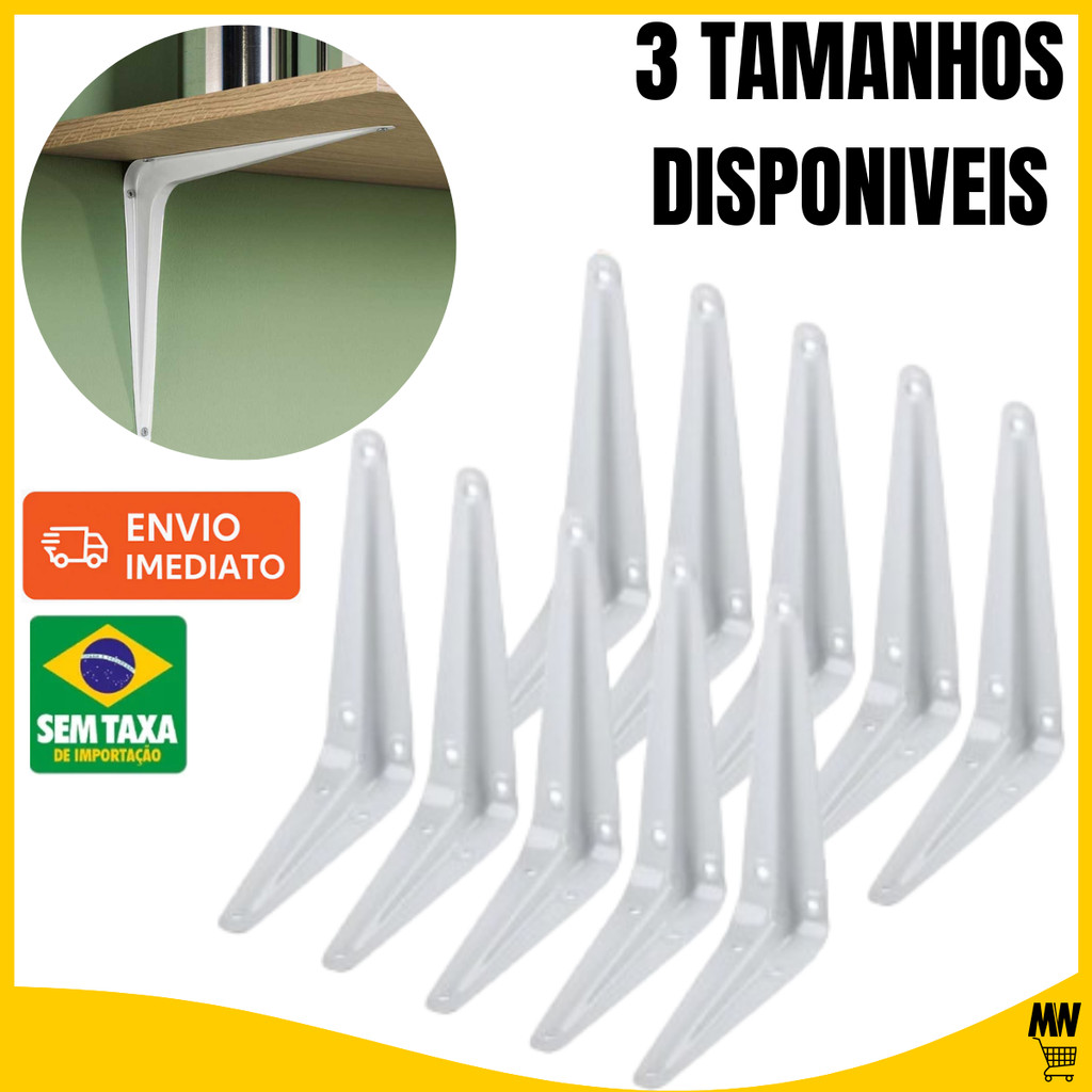 Suportes Mão Francesa - 10x12cm/15x20cm/20x25cm Canto Tábua Cantoneira Reforçada Branca BP