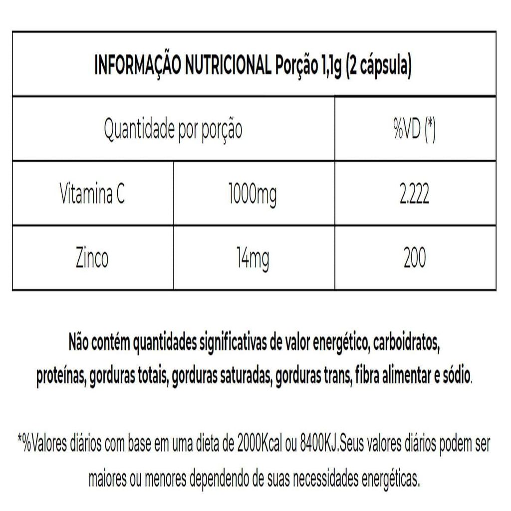 Este suplemento de Vitamina C combinou as propriedades desta substância às do Zinco, essa combinação ajuda o organismo a utilizar todo o seu potencial de defesa . O Zinco auxilia na multiplicação das células de defesa enquanto a Vitamina C ajuda no funcionamento adequado das mesmas. Como Tomar Recomenda-se ingerir 2 cápsulas ao dia. Deve ser ingerido com líquido. Gestantes, nutrizes e crianças até 3 (três) anos, somente devem consumir este produto sob orientação de nutricionistas ou médico. Consumir este produto conforme Recomendação de Ingestão Diária constante da embalagem. Ingredientes Vitamina C (Ácido ascórbico), zinco quelato. Cápsula: Gelatina, água purificada, umectante glicerina e dióxido de titânio. NÃO CONTÉM GLÚTEN. ...