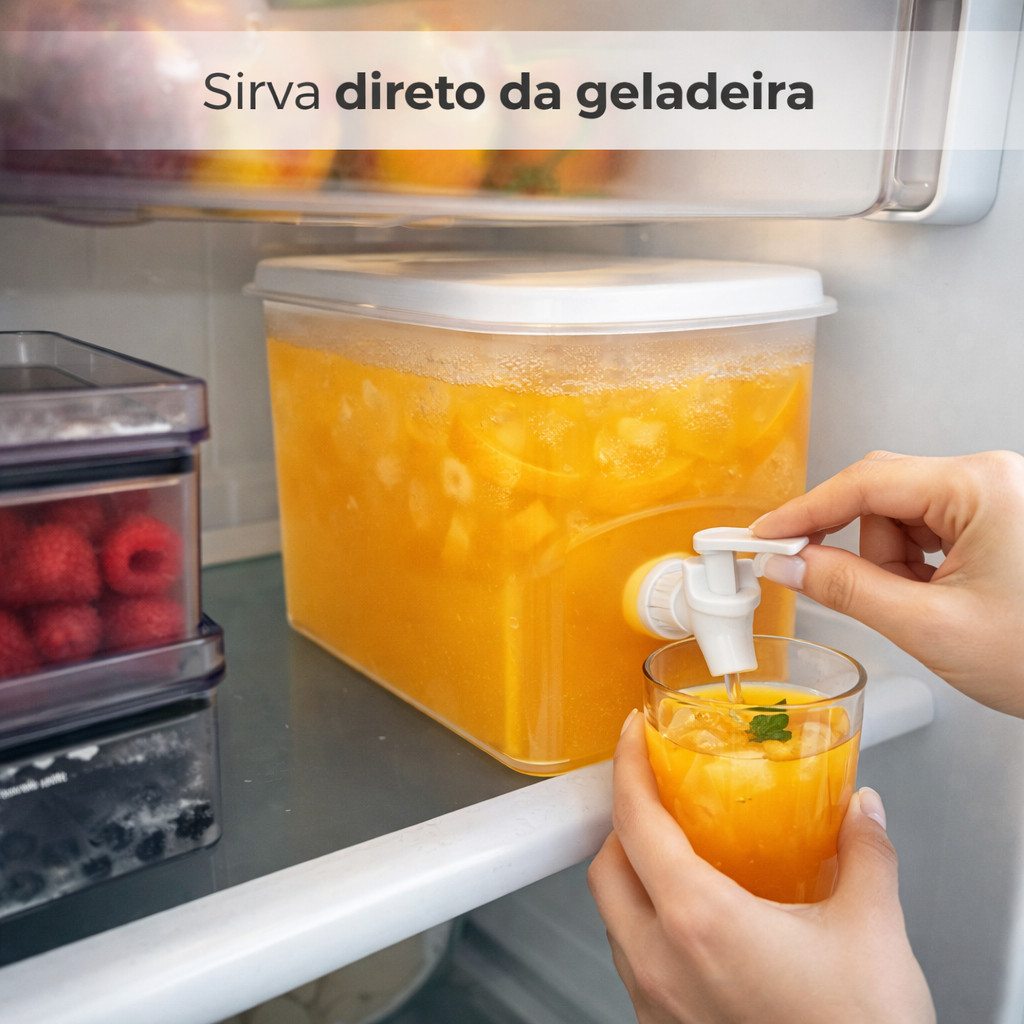 Suqueira 3L para Geladeira Dispenser de Bebidas Chá Sucos Drinks Água
