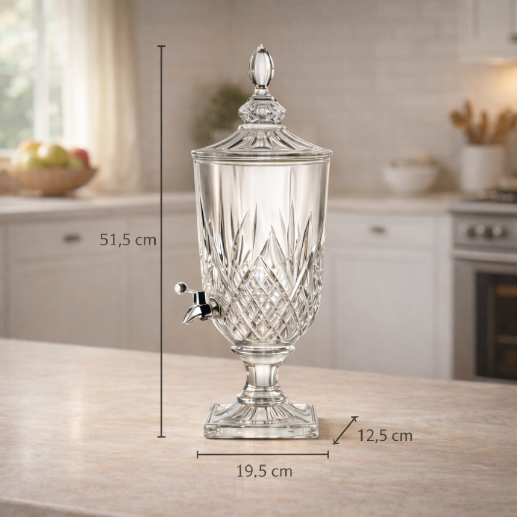 Suqueira de Vidro 5L com Torneira Jarra Transparente Tampa Cristal Diamond Bebidas Água Saborizada