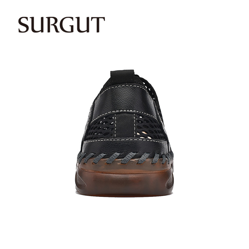 SURGUT Sandálias De Malha De Couro Masculino Verão Anti-Colisão Toe Designer Moda Mão-Costurado Antiderrapante Resistent