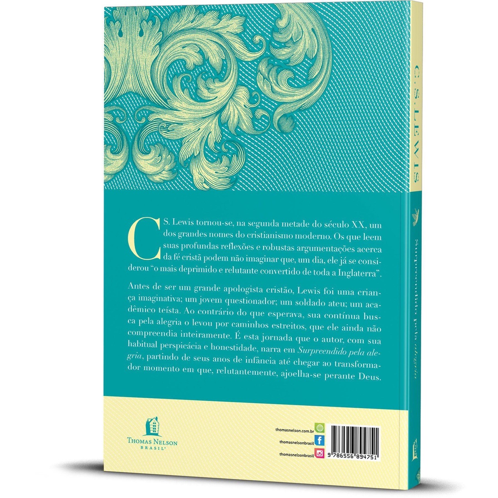 C. S. Lewis tornou-se, na segunda metade do século XX, um dos grandes nomes do cristianismo moderno. Os que leem suas profundas reflexões e robustas argumentações acerca da fé cristã podem não imaginar que, um dia, ele já se considerou “o mais deprimido e relutante convertido de toda a Inglaterra”.Antes de ser um grande apologista cristão, Lewis foi uma criança imaginativa; um jovem questionador; um soldado ateu; um acadêmico teísta. Ao contrário do que esperava, sua contínua busca pela alegria o levou por caminhos estreitos, que ele ainda não compreendia inteiramente. É esta jornada que o autor, com sua habitual perspicácia e honestidade, narra em Surpreendido pela alegria, partindo de seus anos de infância até chegar ao transformador momento em que, relutantemente, ajoelha-se perante Deus 14x21 cm 272 Páginas