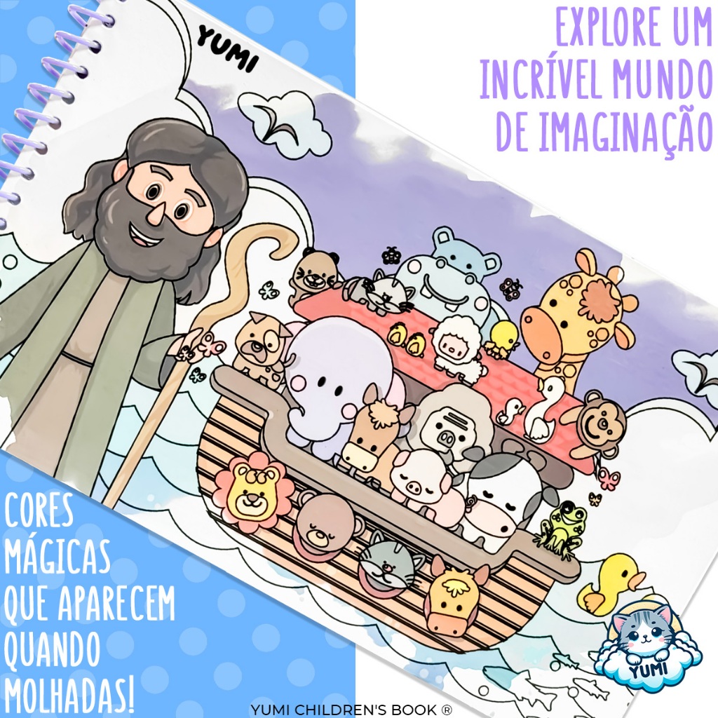 Surpresas com Água Arca de Noé Livro Infantil Pinta Com Água Capa Dura Agua book Aquabook