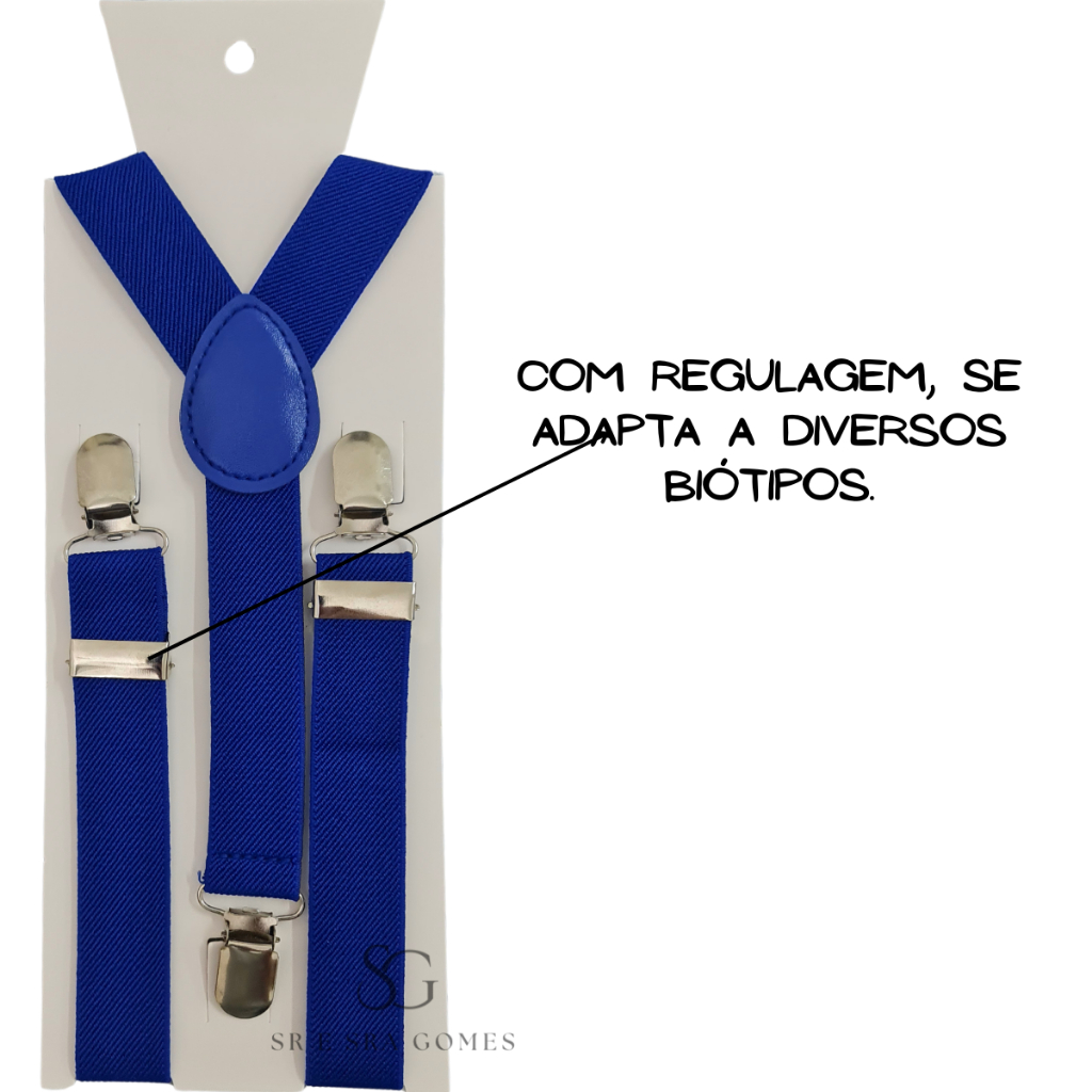 Contém 1 suspensório Inafantil na cor Azul Royal. Aquele item perfeito para deixar o visual diferente e sofisticado, o modelo possui uma grande elasticidade o que garante o conforto na hora de usar, fechos fáceis de abrir e que se fixam bem na hora do encaixe, todos os materiais de excelente qualidade e durabilidade, para ser usado em diversas ocasiões desde as mais informais até as mais elegantes e sofisticadas, eventos, casamentos, congressos e até mesmo em fantasias. Modelo -TAMANHO ÚNICO. -Infantil. -Veste diversos biótipos por conta da alta elasticidade e da regulagem que possui. Medidas Suspensório -Elásticos laterais 48 cm. -Elástico central 19 cm. -Medida total e uma extremidade a outra 67 cm. Recomendações (sugeridas) Para crianças de 1 ano de idade até 10 anos de até de 1.45 de altura (lembrando que pode-se variar para mais por conta da elasticidade do material) AVISO Pode haver variações de tons dependendo do dispositivo utilizado para a visualização das fotos. Para recompras atente-se ao lote disponível no momento, pode haver variações de tons ou detalhes conforme troca de lote. Para dúvidas entre em contato teremos o prazer de responder!
