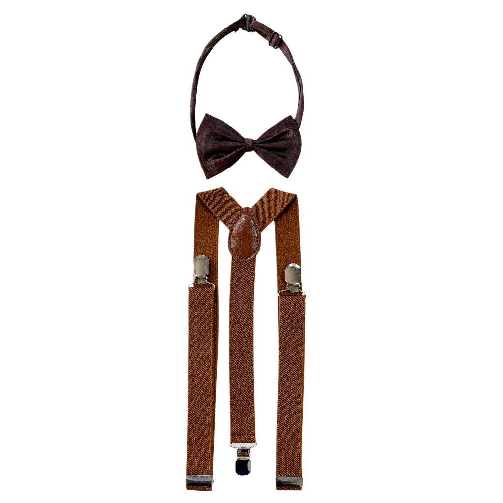 Suspensório e Gravata Borboleta Marrom Para Adultos Social Casamento