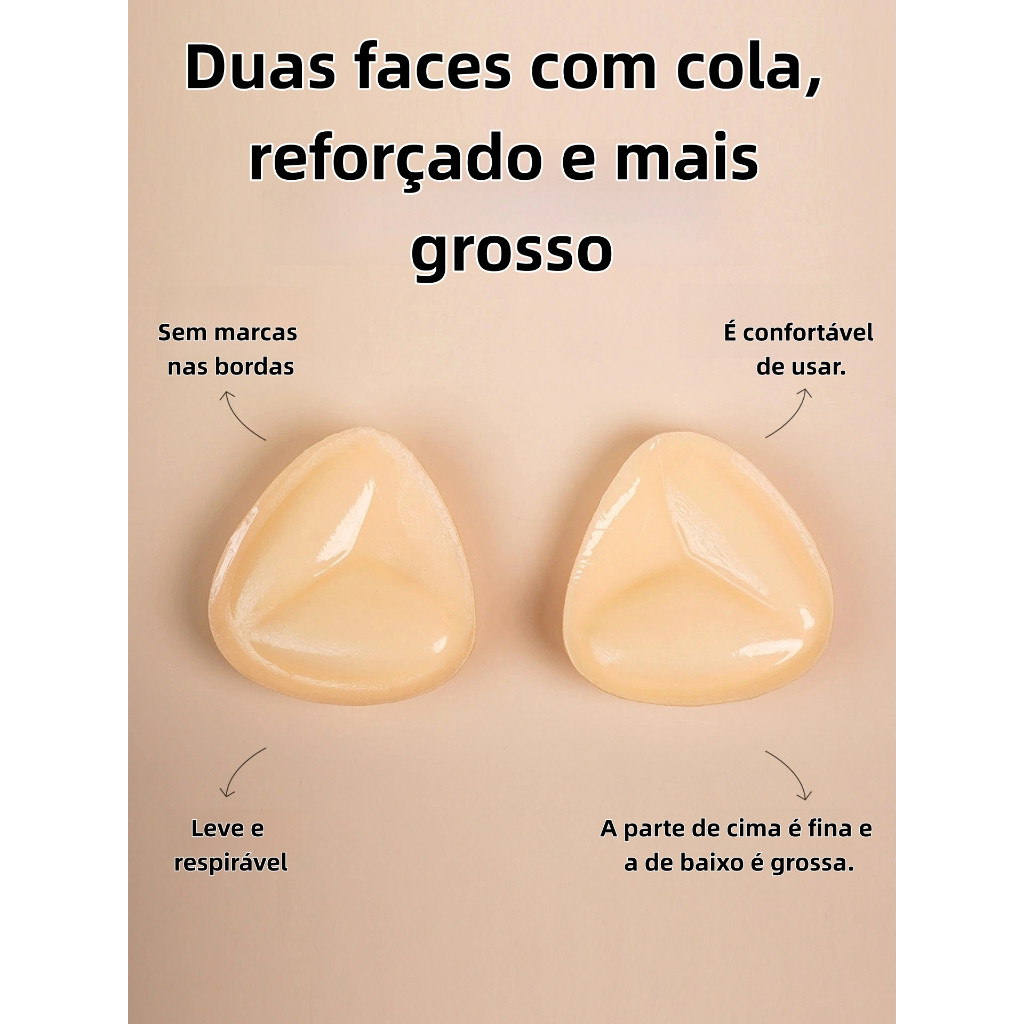 Sutiã Adesivo Triangular – Sustentação Invisível e Confortável Ideal para quem quer mais segurança e firmeza sem usar sutiã! O bojo adesivo em formato triangular se adapta melhor ao formato natural dos seios, proporcionando sustentação discreta e acabamento invisível. Perfeito para vestidos decotados, regatas, blusas de alcinha, biquínis e roupas de noiva. ✨ Principais Diferenciais 🔺 Formato Triangular Anatômico Modela melhor e encaixa perfeitamente. 💎 Dupla Face com Cola nas Duas Laterais Fixa tanto na pele quanto na roupa, evitando que escorregue. 🪶 Pequeno e Super Leve Confortável para usar por horas sem incômodo. 👗 Efeito Invisível Não marca na roupa. 🔄 Reutilizável Pode ser lavado e reutilizado diversas vezes (seguindo as instruções). 👙 Indicado para: Vestidos com decote profundo Regatas e blusas de alcinha Biquínis e maiôs Vestidos de noiva Looks sem sutiã tradicional 💖 Discrição, leveza e segurança em um único produto! Se quiser, posso criar uma versão mais curta (estilo anúncio rápido), ou uma versão mais técnica com medidas e instruções de uso. Petite:Yes Condition:Novo Quantity:1 Par Plus Size:No Shape:Triângulo pack type:Single Region of Origin:Mainland China Material:Leather