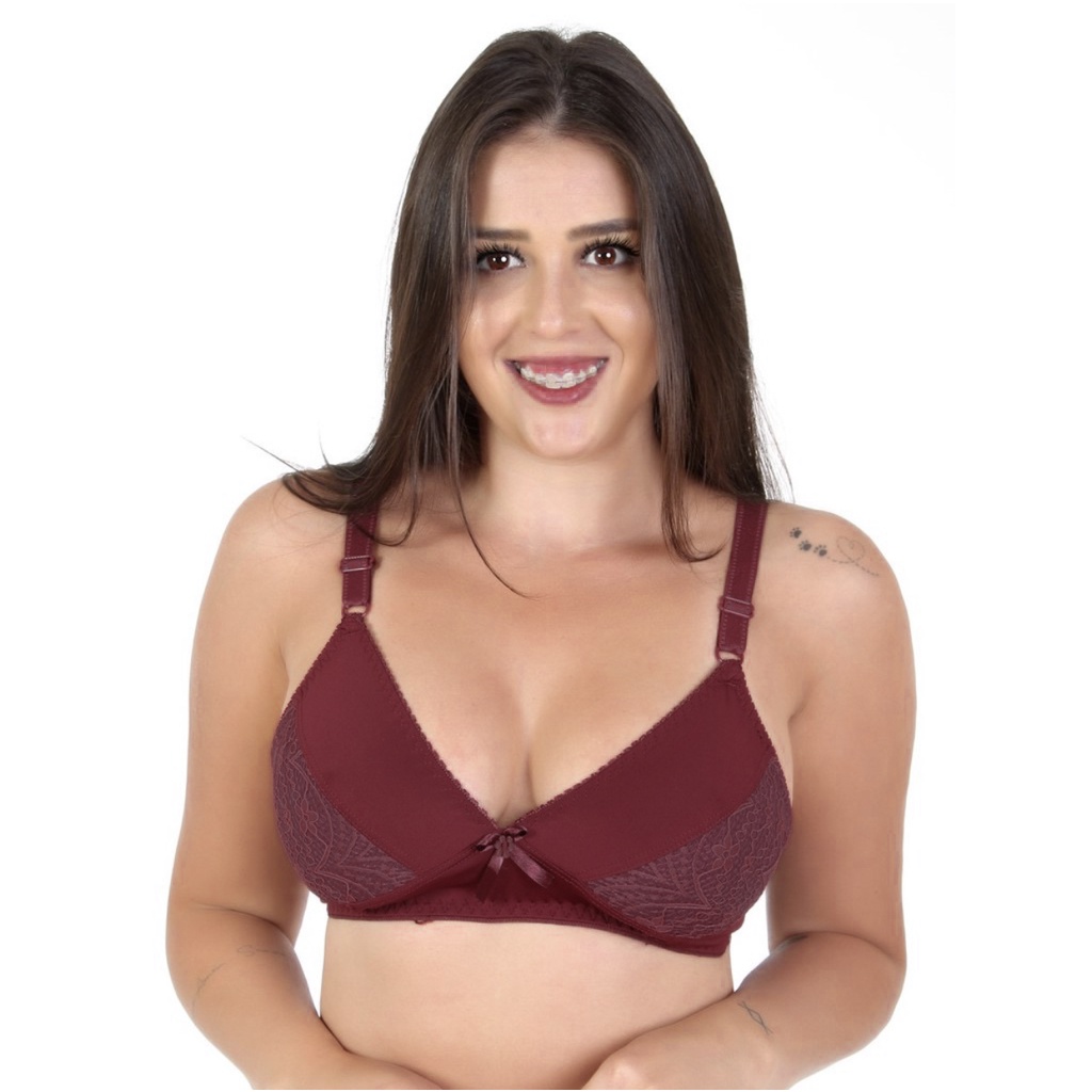 O modelo é confeccionado em tecido romantic, sem bojo, porém sua sustentação é reforçada por alças mais largas, e um fecho colchete nas costas. Esse sutiã, possui um lindo detalhe em renda que lhe garante um ar elegante e sofisticado. Seus detalhes estão em harmonia com o tecido e cores, criando uma aparência limpa e um acabamento muito refinado que garante uma peça bonita e prática para o dia a dia de todas as mulheres. *** CORES DISPONÍVEIS: Rubro, Satin, Preto, Chocolate, Castanho, Cinza e Branco.*** *** TAMANHOS DISPONÍVEIS: M – G – GG *** ***TABELA DE MEDIDAS*** Tamanho - Busto - Tórax P (34-36) 85-89 cm 61-71 cm M (38-40) 90-94 cm 69-78 cm G (42-44) 95-99 cm 79-83 cm GG (46-48) 100-104 cm 84-88 cm *** PRODUTO FABRICADO NO BRASIL*** *** GARANTIA BELLE FASCINO LINGERIE*** *** Atenção: Pode haver variação nas cores por conta de fatores como iluminação fotográfica e brilho de cada monitor. ** - TIRE TODAS AS SUAS DÚVIDAS, ANTES DE EFETUAR A COMPRA.