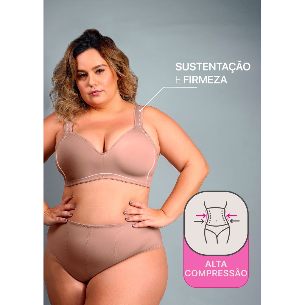 Sutiã Em Cetinete De Alta Compressão E Super Power. Sem Bojo, Mas Com Busto Moldado Compondo Anatomia Dos Seios. Alças Formatadas Em Espuma Para Maior Conforto, Proporcionam Sustentação E Firmeza Aos Seios, Sem Marcar Os Ombros. Laterais Com Costuras Reforçadas. Veste Plus Size.