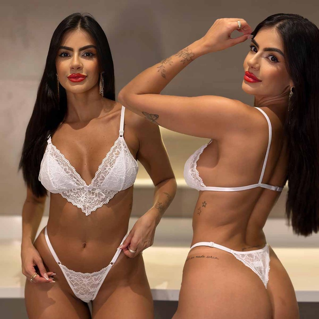 Conjunto Sem Bojo Renda Kariny - Sem Bojo com regulagem nas alças - Confeccionado em Renda - Sem Metal - Ferrinho - Regulagem de plástico Atenção para a tabela de medidas, não efetuamos trocas de peças intimas. Tabela de Medidas: P veste 36/38 M veste 40/42 G veste 44 GG veste 46 Sobre a cor do produto: Fotos reais do produto em nosso estoque. Pode haver variação na cor do produto final de acordo com o brilho do monitor, tela do celular. Também pode haver variação no desenho da renda. Aproveite o frete e veja mais produtos em nossa loja. Somos uma loja especializada em lingerie, sempre trazendo lindas novidades com qualidade e conforto, valorizando a mulher brasileira e tornando seu dia a dia ou noite muito mais especial.