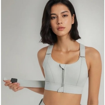 Sutiã Esportivo Casual Com Zíper Liso E Cruzado blindado Para Mulheres