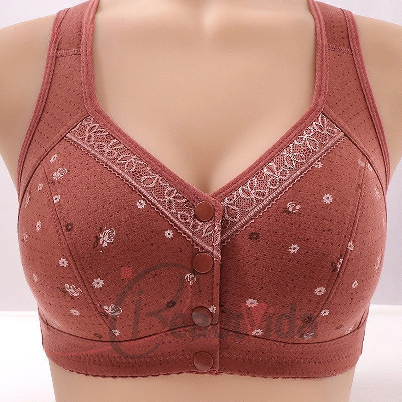 Sutiã Feminino Plus Size em Algodão, Sem Aro e Sem Bojo, Fivela Frontal, Respirável com Renda – Roupa Íntima Confortável