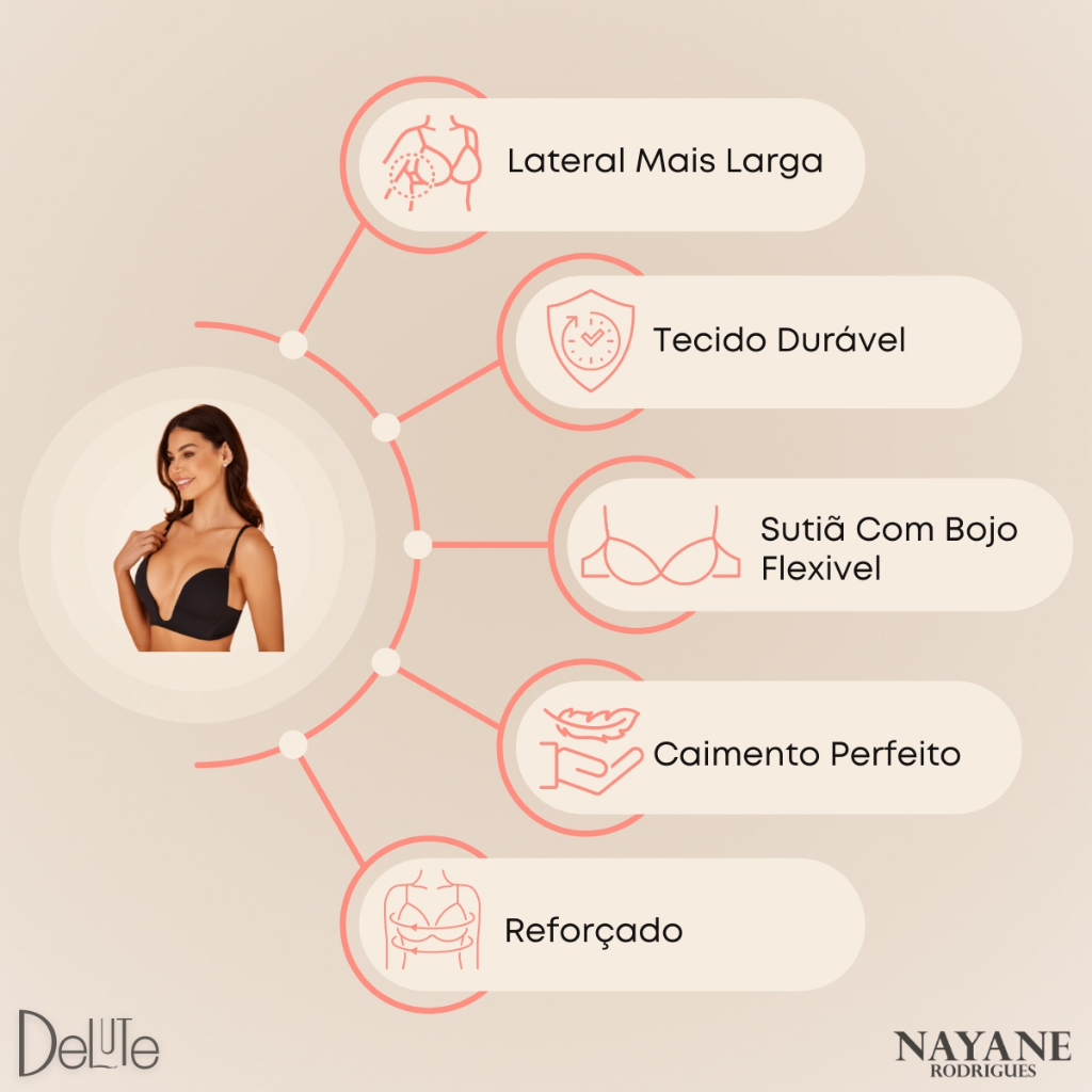 Sutia Magico Com Bojo Decote em U Profundo Push Up Sutien Com Efeito Silicone Da Nayane Rodrigues