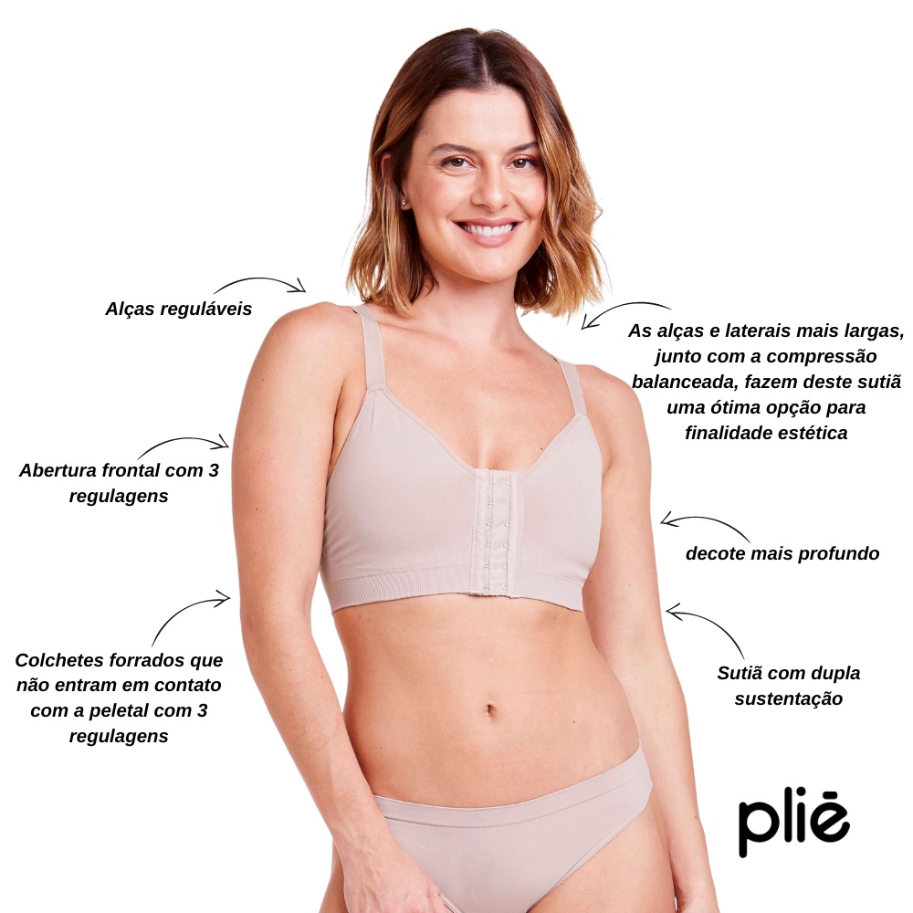 Sutia Plie Alta Sustentacao Estetico sem Bojo Sem Costura Lateral Pos Cirurgico Fecho Frontal