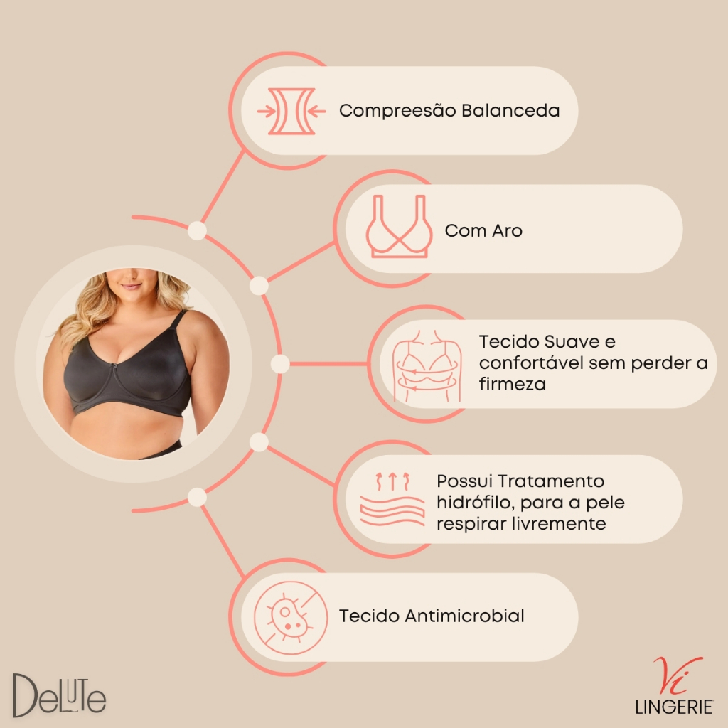 Sutia Plus Size Sustentação Vilingerie Com Aro Moldado Duplo Alca Larga Conforto E Segurança