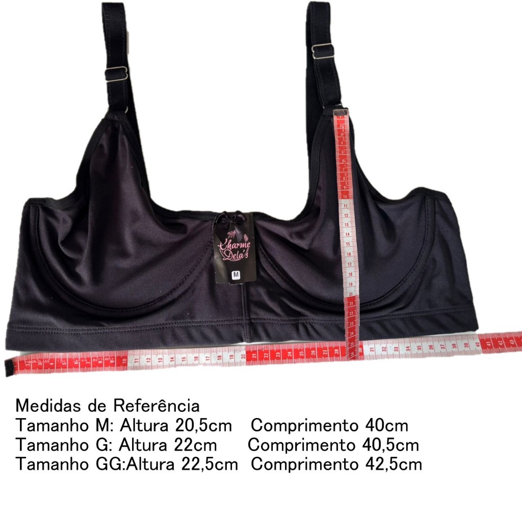 *SUTIÃ REFORÇADO SEM BOJO COM ARCO METAL* Atenção! Confira as medidas, modelo com forma grande: Tabela de Medidas (cm): 44|M Busto 93-96 / costas 78-82 46|G Busto 97-100 / costas 83-87 48|GG Busto 101-104 / Costas 88-92 Excelente Lingerie. Esse sutiã é todo feito em Poliamida com toque macio e elástico, as alças possuem regulagem de tamanho em metal, o colchete tem 2 opções de tamanho, modelagem que veste super bem no corpo. -Com arco de metal e sem bojo, mas reforçado, para alta sustentação. -Valoriza o conforto e a sensação de segurança. -Lateral larga que proporciona maior sustentação e modela o seu corpo. -Alça larga que garante mais sustentação, ideal para seios volumosos e para mulher gestante. -Poliamida lisa. Composição: 90% poliamida 10% elastano. Forro 100% algodão. INSTRUÇÕES DE LAVAGEM: • Lavar á mão • Não usar alvejante • Não passar • Não usar secadora • Não lavar á seco • Secar á sombra Compre conosco e obtenha benefícios: Postamos em até 24 horas úteis após a confirmação do pagamento; Atendimento exclusivo do início ao fim da compra; Qualidade garantida: nossa marca se encontra 5 anos no mercado com ótimos resultados. Sobre a Fábrica: Somos a empresa CHARME DELA'S buscamos sempre produzir produtos com a melhor qualidade e durabilidade, pensando sempre na satisfação do consumidor. Trabalhamos com excelentes materiais na produção. Nossa equipe possui um rigoroso controle de qualidade, para que nosso peça final seja única, confortável, durável e perfeita para vocês, clientes já fidelizados a primeira vista!
