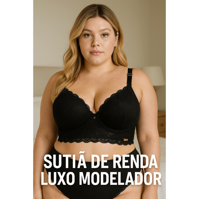 SUTIÃ RENDA LUXO PLUS SIZE MODELADOR DE ALTA SUSTENÇÃO COM TALA LATERAL E FORRO INTERNO
