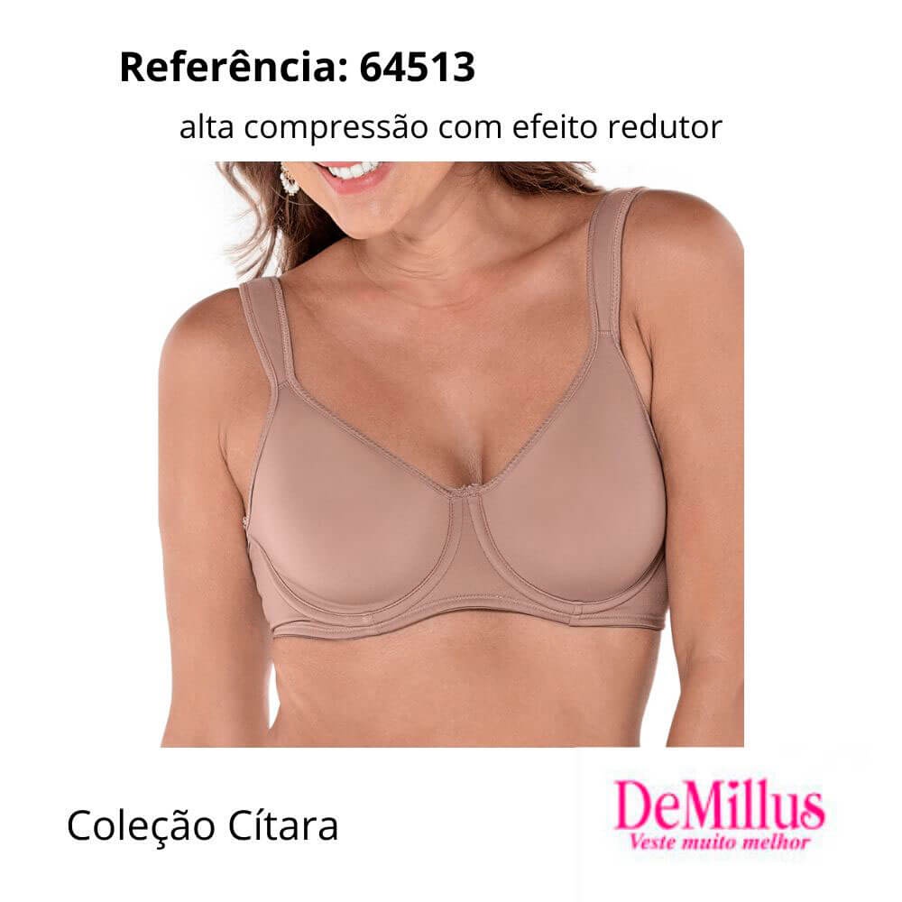 Sutiã Sustentação DeMillus 64513 Alças Espumadas Sutiã confeccionado em microfibra de alta compressão, proporcionando um efeito redutor e modelador. Modelo com aro e busto anatômico sem bojo, que garante um ajuste perfeito e confortável. Laterais largas oferecem maior sustentação, enquanto as alças espumadas, fixas e reguláveis, proporcionam mais conforto ao uso diário. O fechamento nas costas conta com colchetes duplos e tripla regulagem, garantindo melhor ajuste. Composição: 77% Poliamida e 23% Elastano. TABELA DE MEDIDAS: MANEQUIM: 38 | - | BUSTO(cm): 71-76 | TÓRAX(cm): 56-61 MANEQUIM:40 | TAMANHO: PP | BUSTO(cm): 77-82 | TÓRAX(cm): 62-67 MANEQUIM: 42 | TAMANHO: P | BUSTO(cm): 83-87 | TÓRAX(cm): 68-72 MANEQUIM: 44 | TAMANHO: M | BUSTO(cm): 88-92 | TÓRAX(cm): 73-77 MANEQUIM: 46 | TAMANHO: G | BUSTO(cm): 93-97 | TÓRAX(cm): 78-82 MANEQUIM: 48 | TAMANHO: GG | BUSTO(cm): 98-102 | TÓRAX(cm): 83-87 MANEQUIM: 50 | TAMANHO: XG | BUSTO(cm): 103-107 | TÓRAX(cm): 88-92 MANEQUIM: 52 | - | BUSTO(cm): 108-112 | TÓRAX(cm): 93-97 MANEQUIM: 54 | - | BUSTO(cm): 113-117 | TÓRAX(cm): 98-102