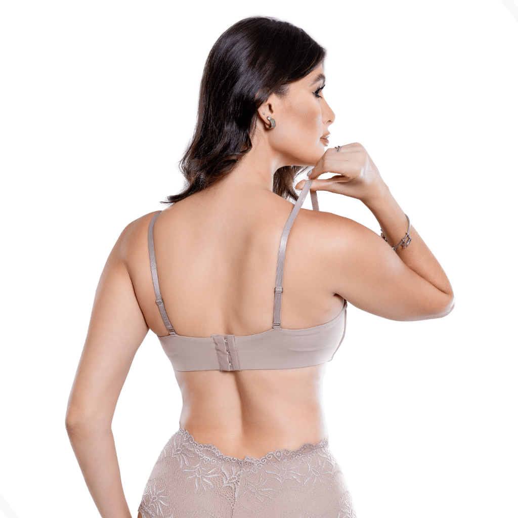 Sutiã tomara que caia Bege com bojo sutian bustie feminino alças removíveis