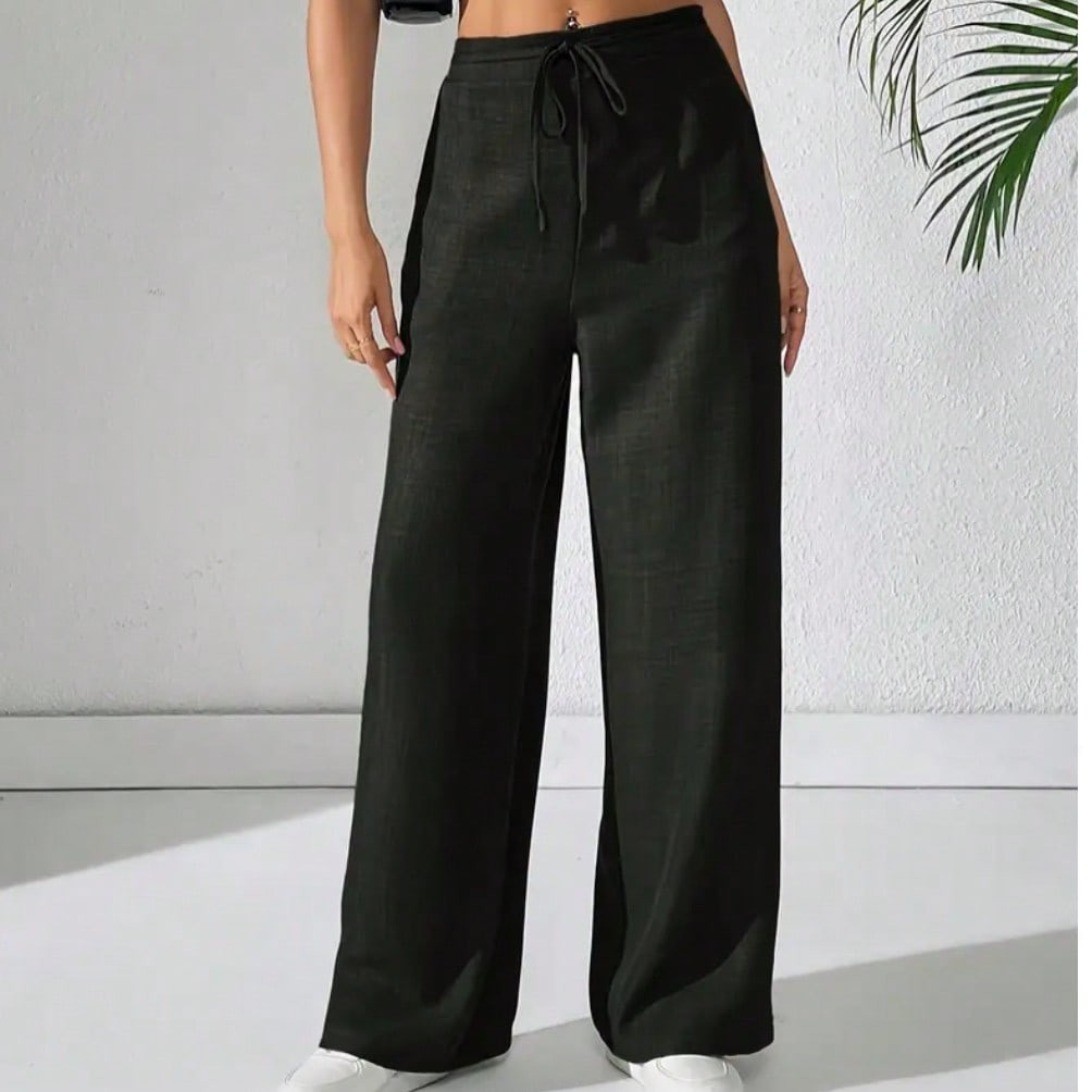 SV Calça Pantalona Feminina Elegante em tecido Marrante Comprimento Longo roupa de Verão