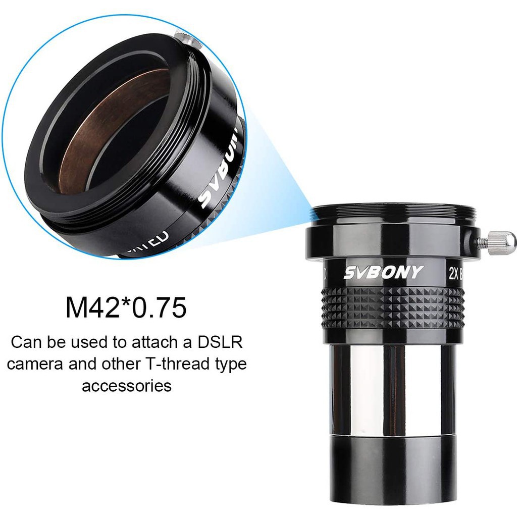 SVBONY SV137 2x Lente Barlow Com Rosca T Macho Corpo De Metal De 1.25 Polegadas Acessório De Telescópio Totalmente Multi