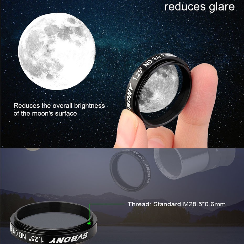 Svbony SV139 Kit De Filtro Telescópio Lunar De 1,25 Polegadas ND4/ND8/ND16/ND1000 Para Reduzir A Brilho Total